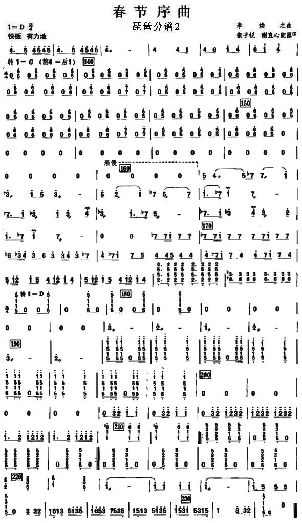 - [分谱,琵琶谱,总谱] 春节序曲之琵琶