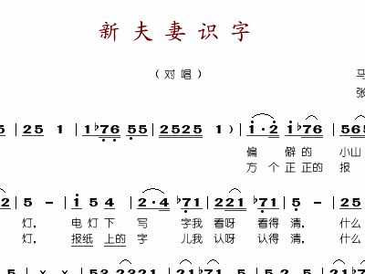 - [钢琴谱,歌谱,秧歌谱] 夫妻识字