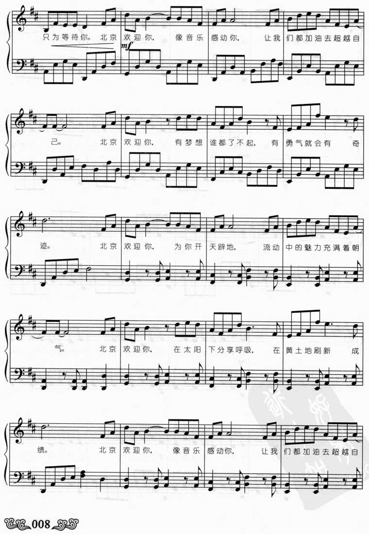 北京欢迎你 编配
