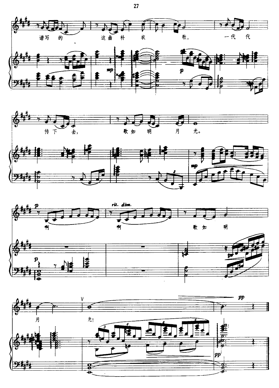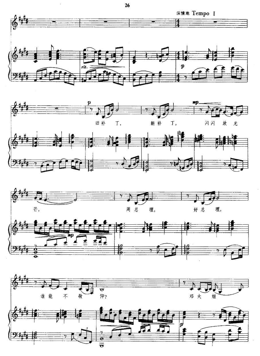 - [钢琴谱,歌谱] 补衣歌 钢伴谱