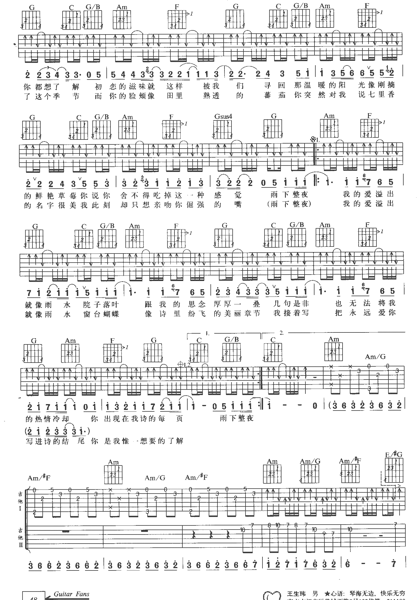 - [歌谱,吉他谱] 七里香