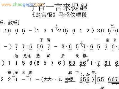 子胥一言来提醒 楚宫恨 马昭仪唱段 琴谱