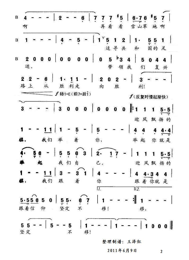 > 迎风飘扬的旗 男低声部旋律