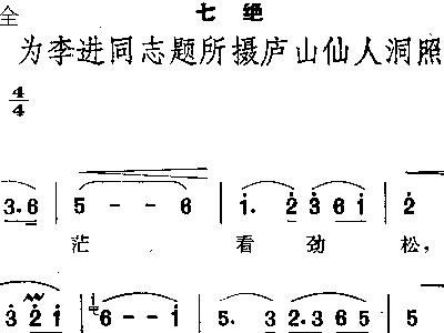 为李进同志题所摄庐山仙人洞照 七绝 中央乐团谱曲 合唱