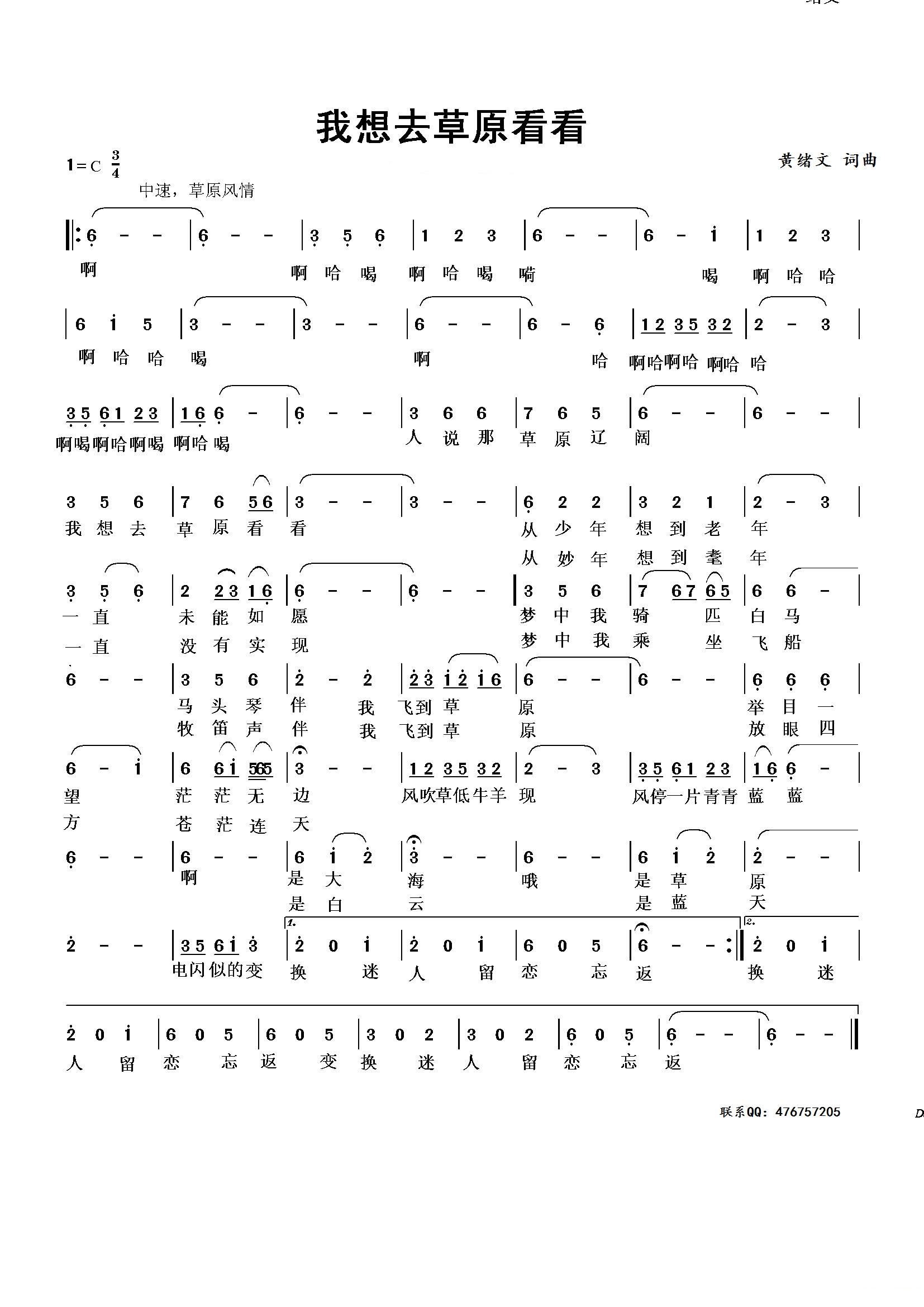 早就想去看看草原 词曲吴德泉旋律小小样