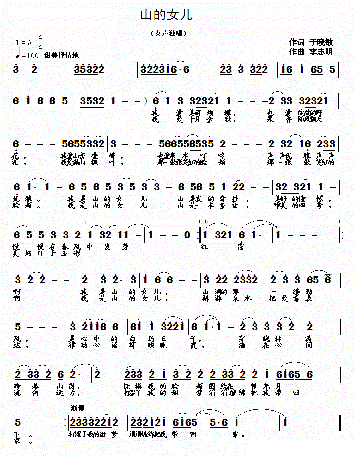 - [歌谱] 大山的女儿 电视剧 大山的女儿 主题歌