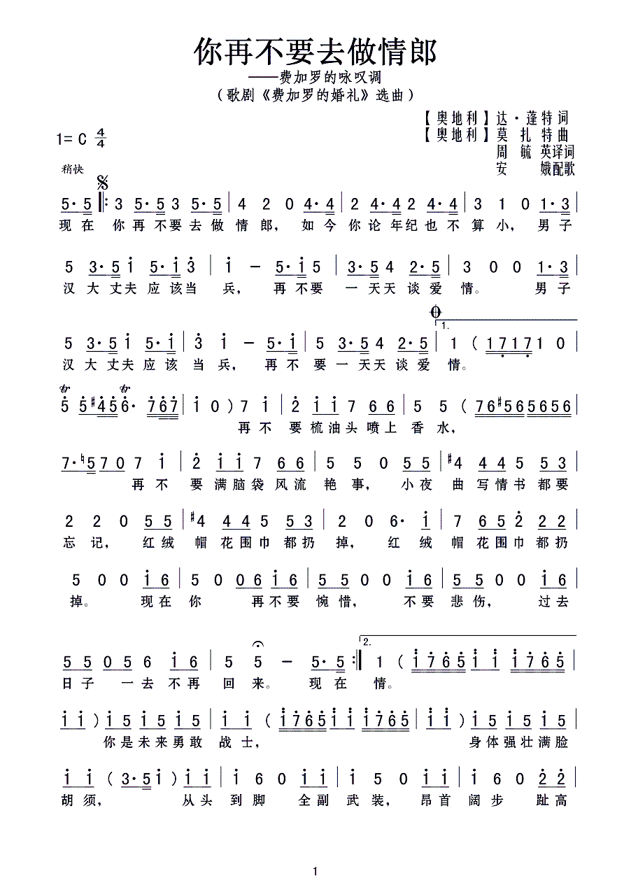 > 你再不要去做情郎 歌剧 费加罗的婚礼 选曲