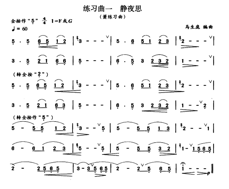 - [笛子谱] 静夜思