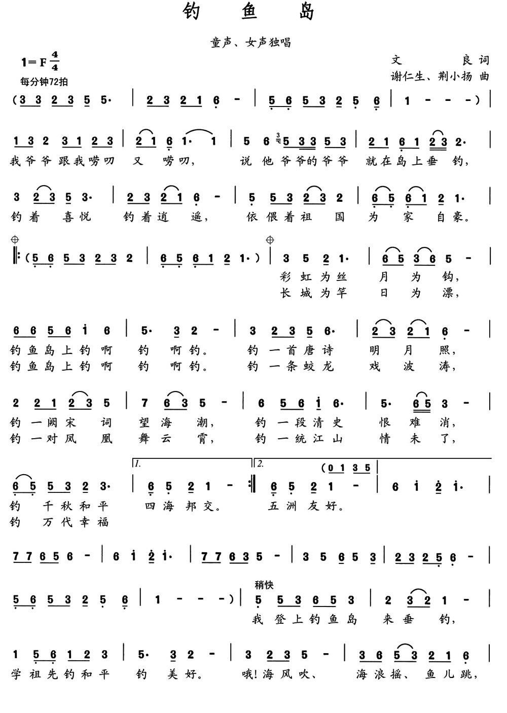 - [歌谱] 钓鱼岛渔歌