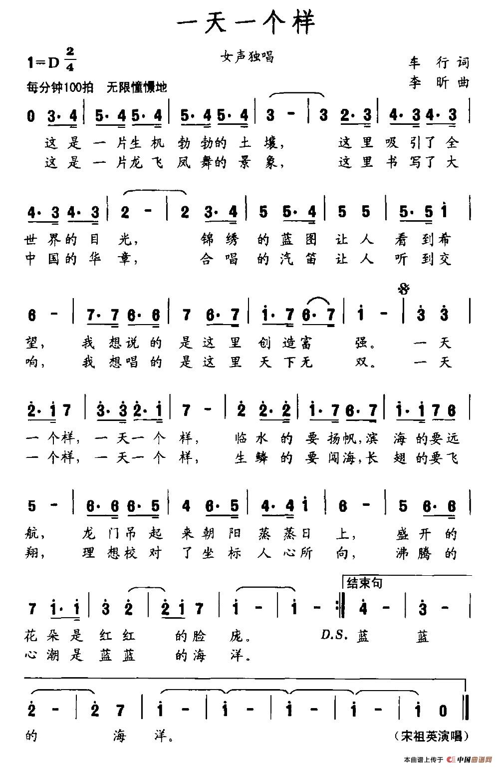 - [歌谱] 一天一个样
