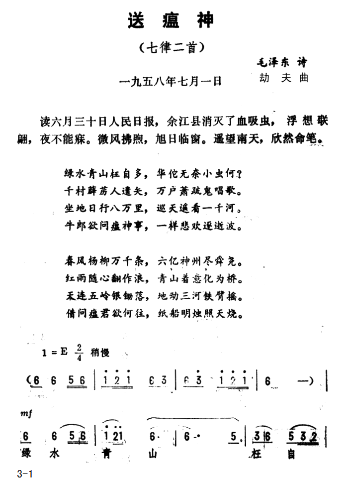 送瘟神 七律二首 京剧唱腔