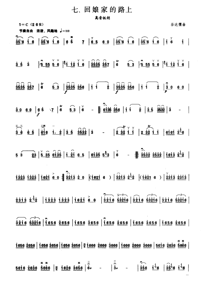 回娘家的路上 高音板胡 扬琴伴奏谱