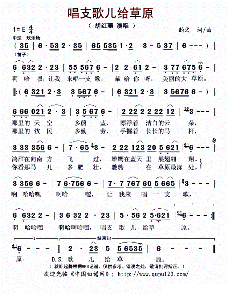 唱支歌儿给草原