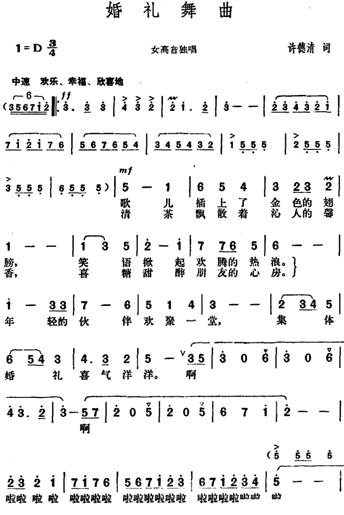 - [歌谱] 婚礼舞曲 台湾阿美族民歌