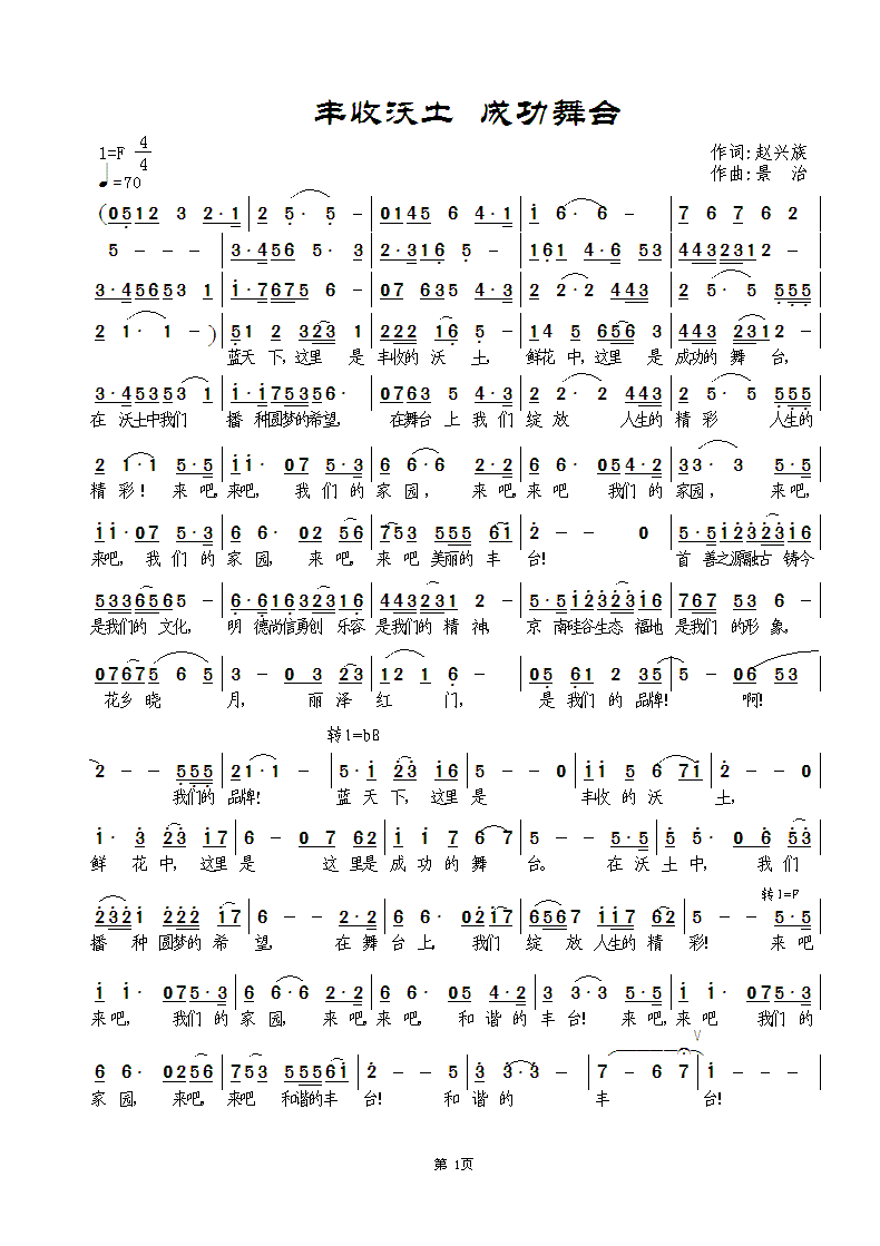 - [歌谱] 丰收沃土 成功舞台