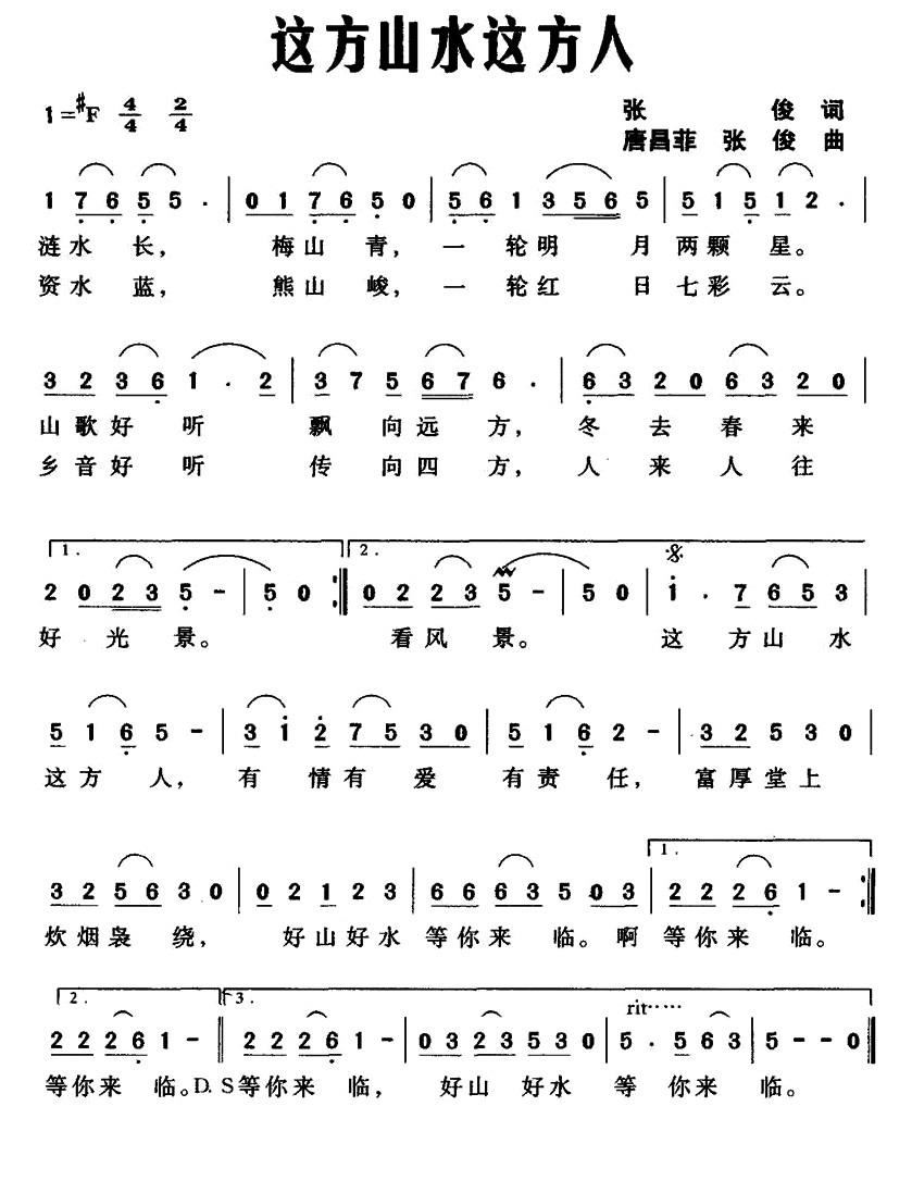- [歌谱] 这一方山好水也好