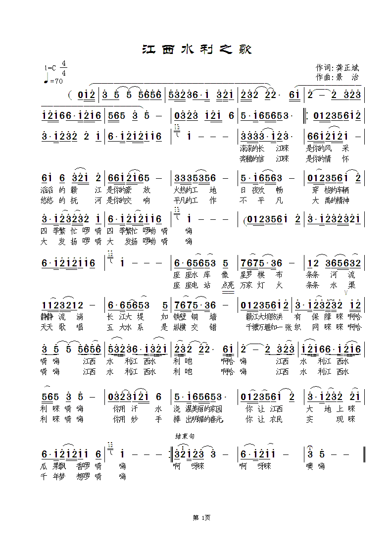 - [歌谱] 江西水利之歌