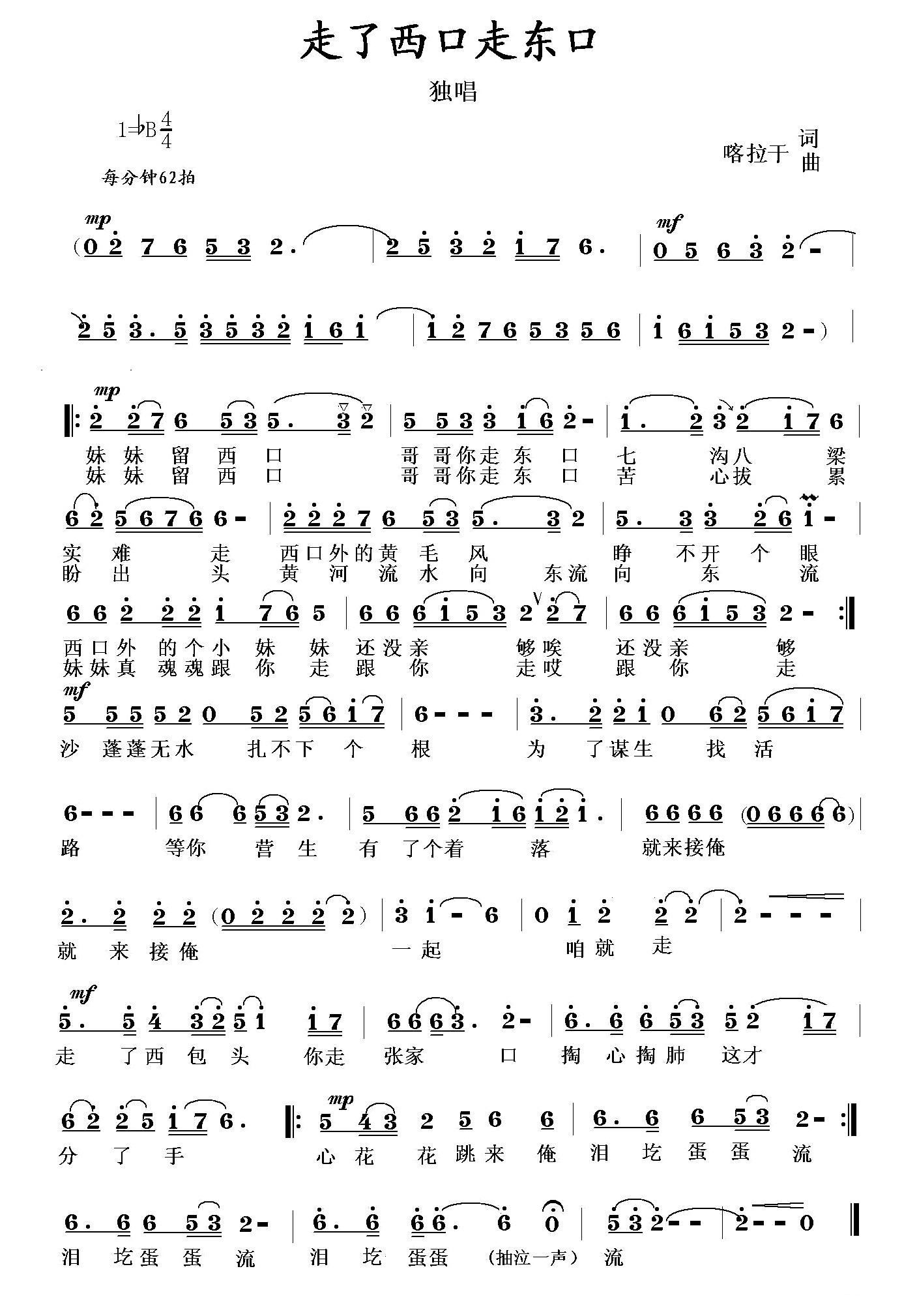 - [歌谱] 您走了吗