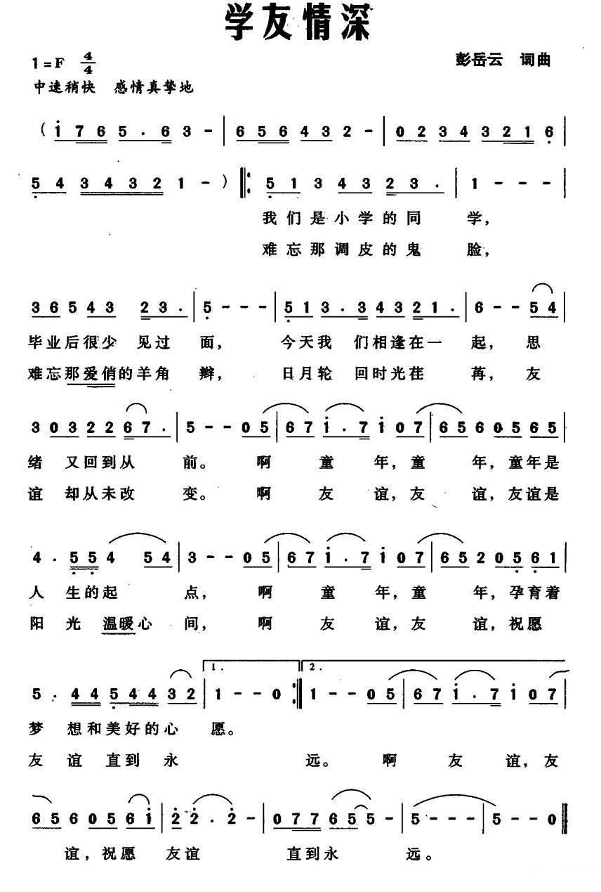 - [歌谱] 同学情深意长