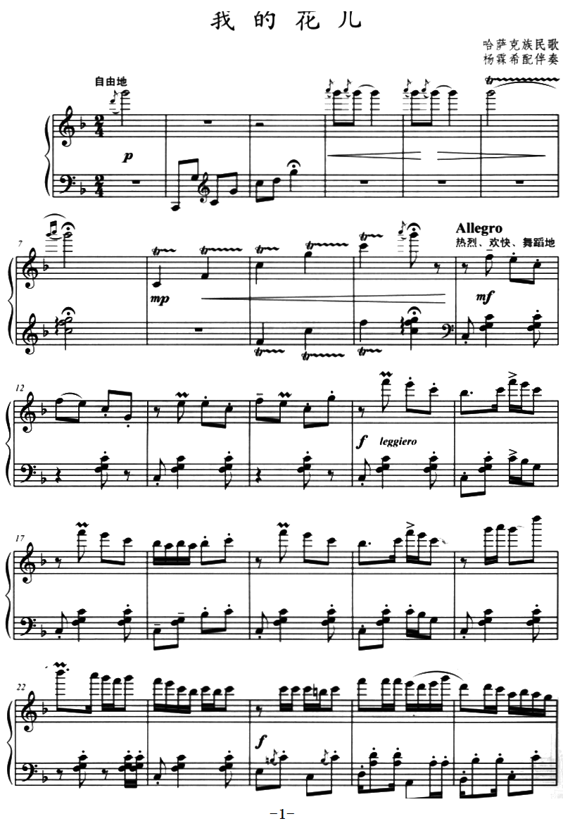 - [歌谱,手风琴谱] 我的花儿