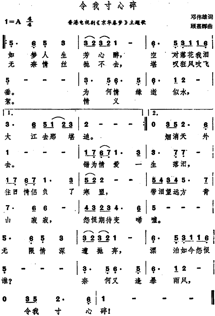 > 令我寸心碎 香港电视剧 京华春梦 主题歌