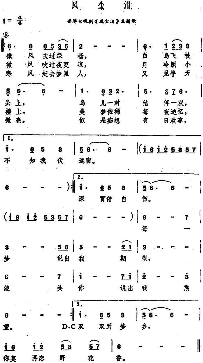 > 风尘泪 香港电视剧 风尘泪 主题歌