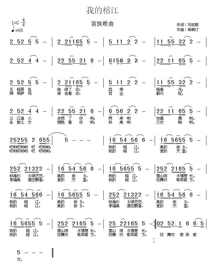 - [歌谱] 我的榕江