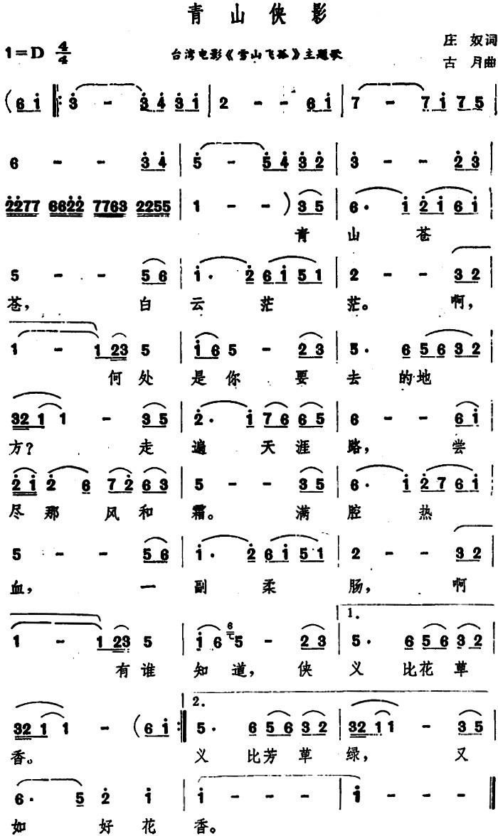 青山侠影 台湾电影 雪山飞孤 主题歌