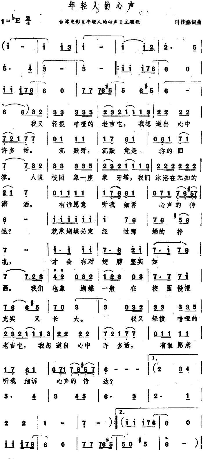 > 年轻人的心声 台湾电影 年轻人的心声 主题歌