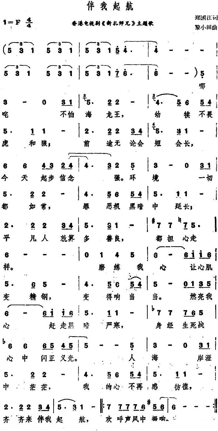 > 伴我起航 香港电视剧 彩扎师兄 主题歌