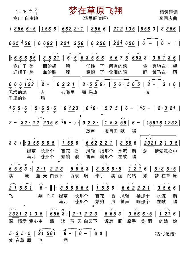 - [歌谱] 在草原上飞翔