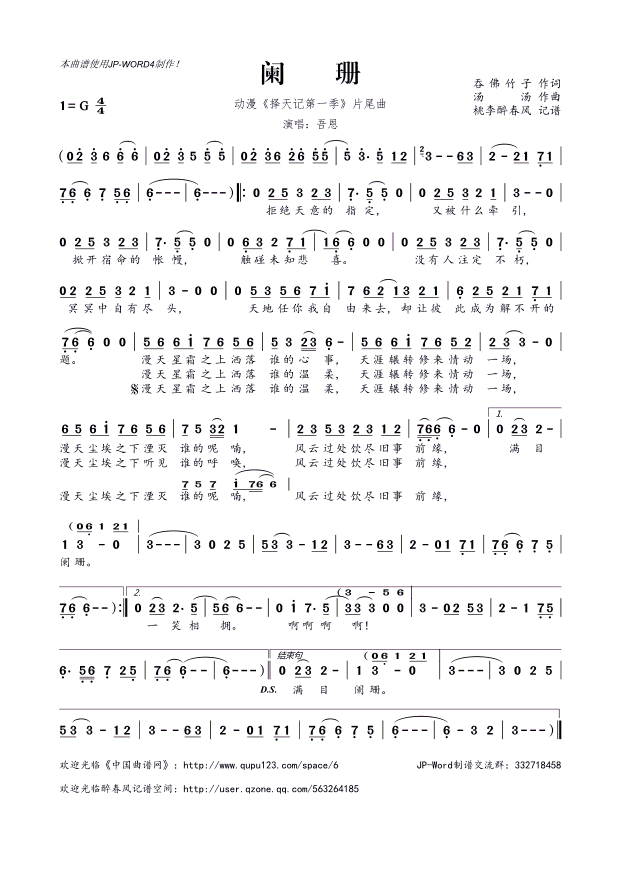 - [歌谱] 笑傲万世 吾恩 HITA