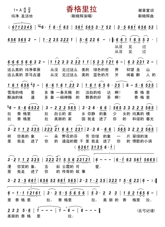 - [歌谱,歌谱] 香格里拉
