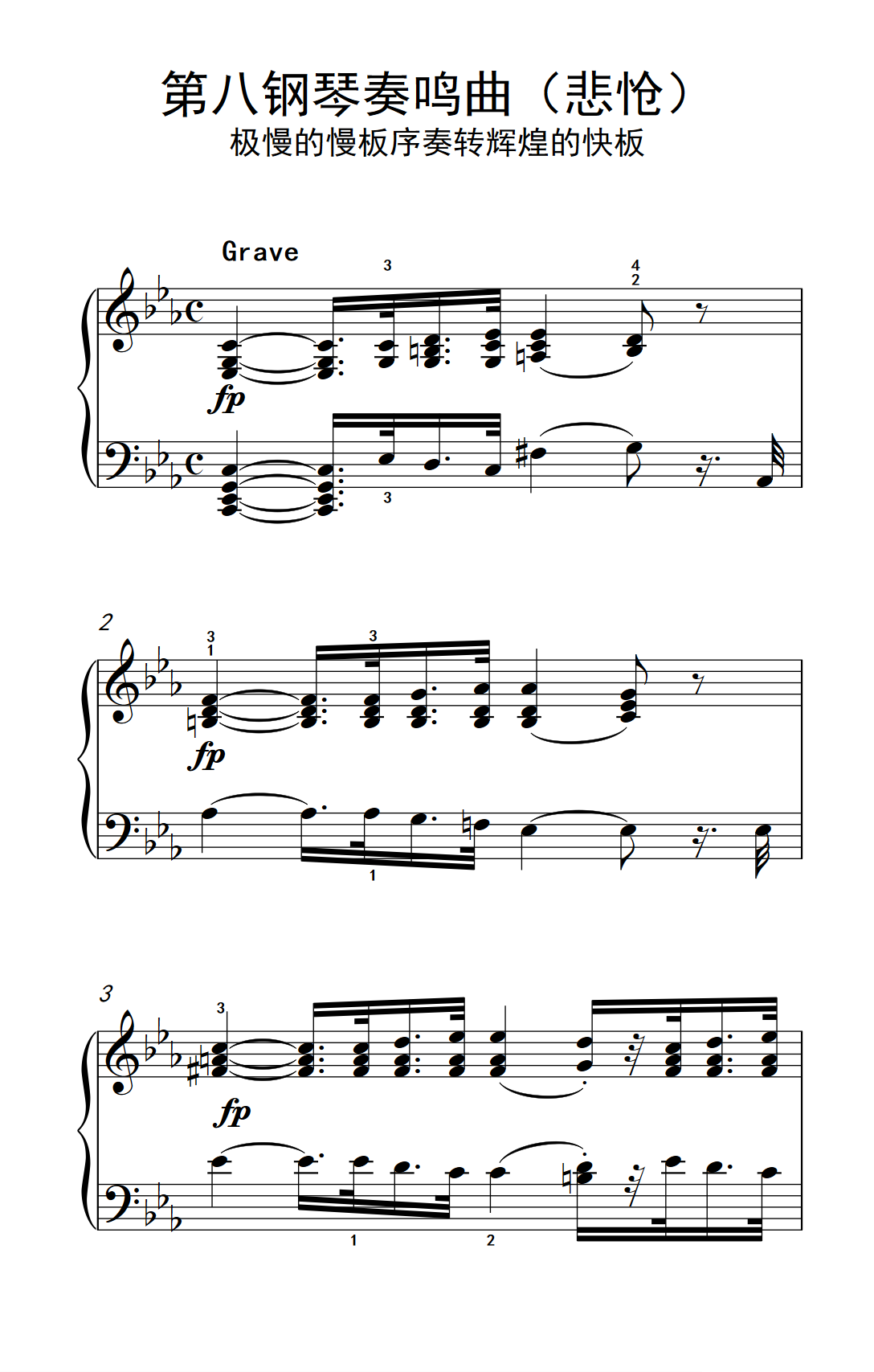 c小调第八钢琴奏鸣曲第一乐章 作品13号 悲怆 3