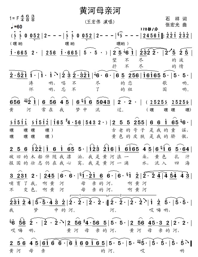 - [歌谱] 黄河长江 王宏伟
