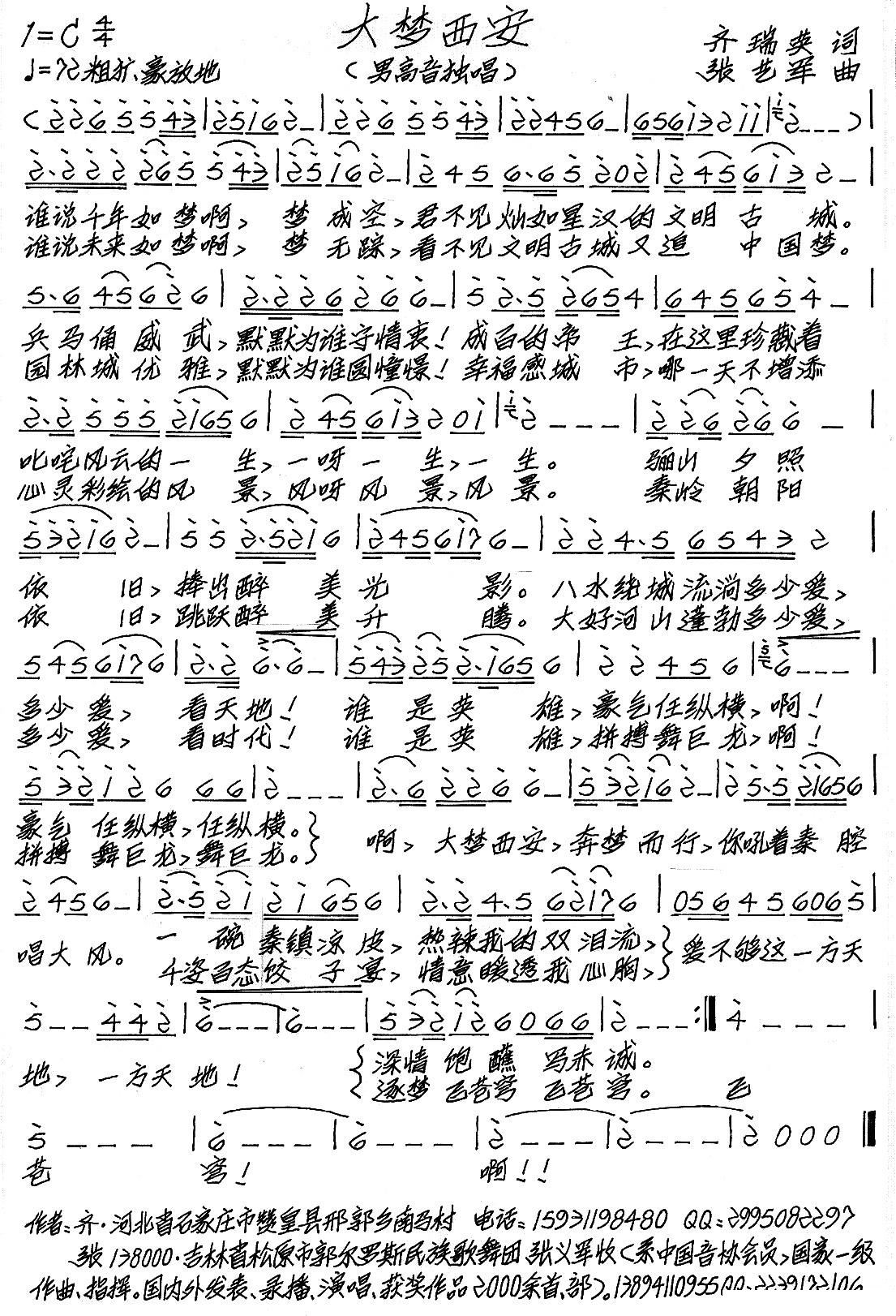 西安 中国梦的起点 第二版 黄清林曲