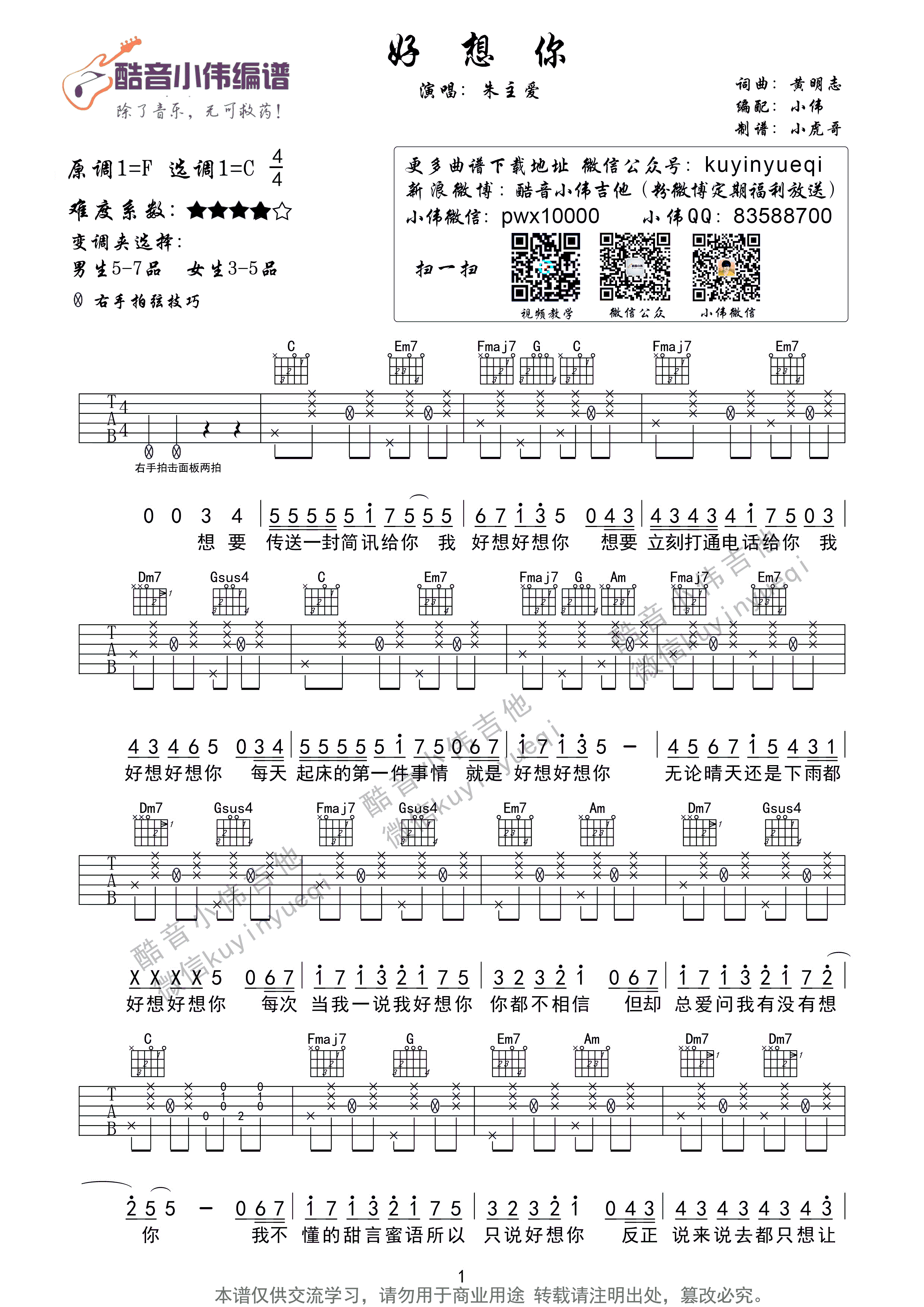 - [钢琴谱,吉他谱] 钢琴 好想你