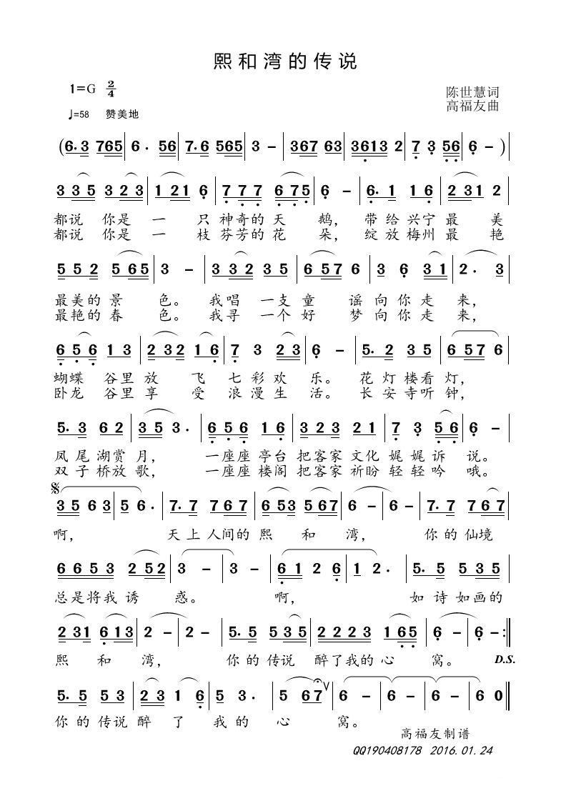 - [歌谱] 天上掉下个熙和湾