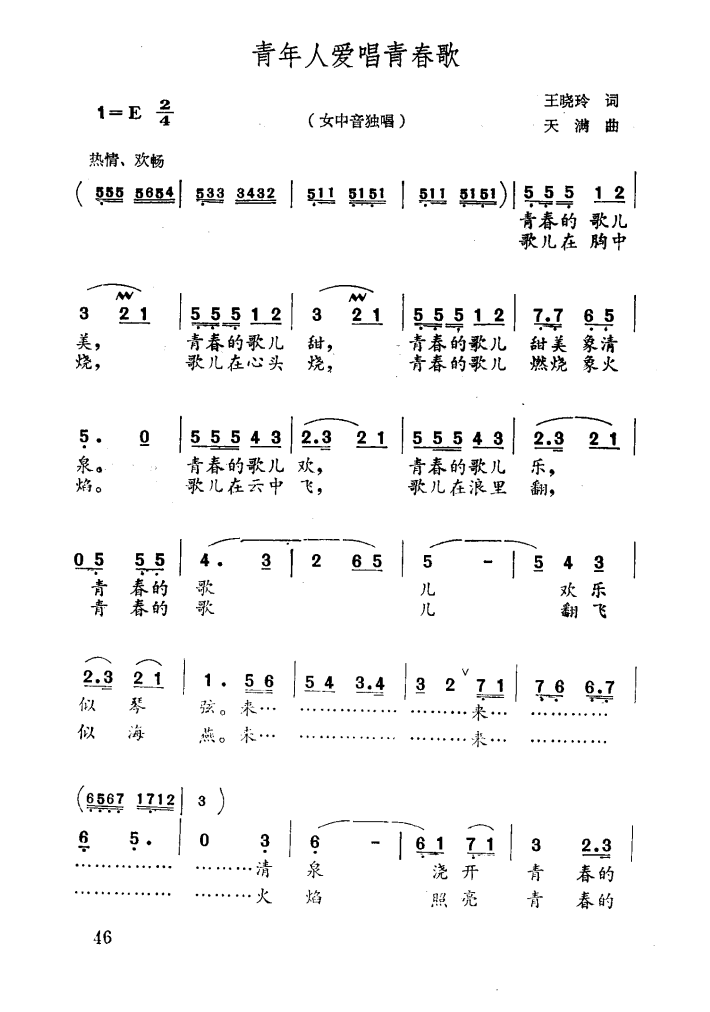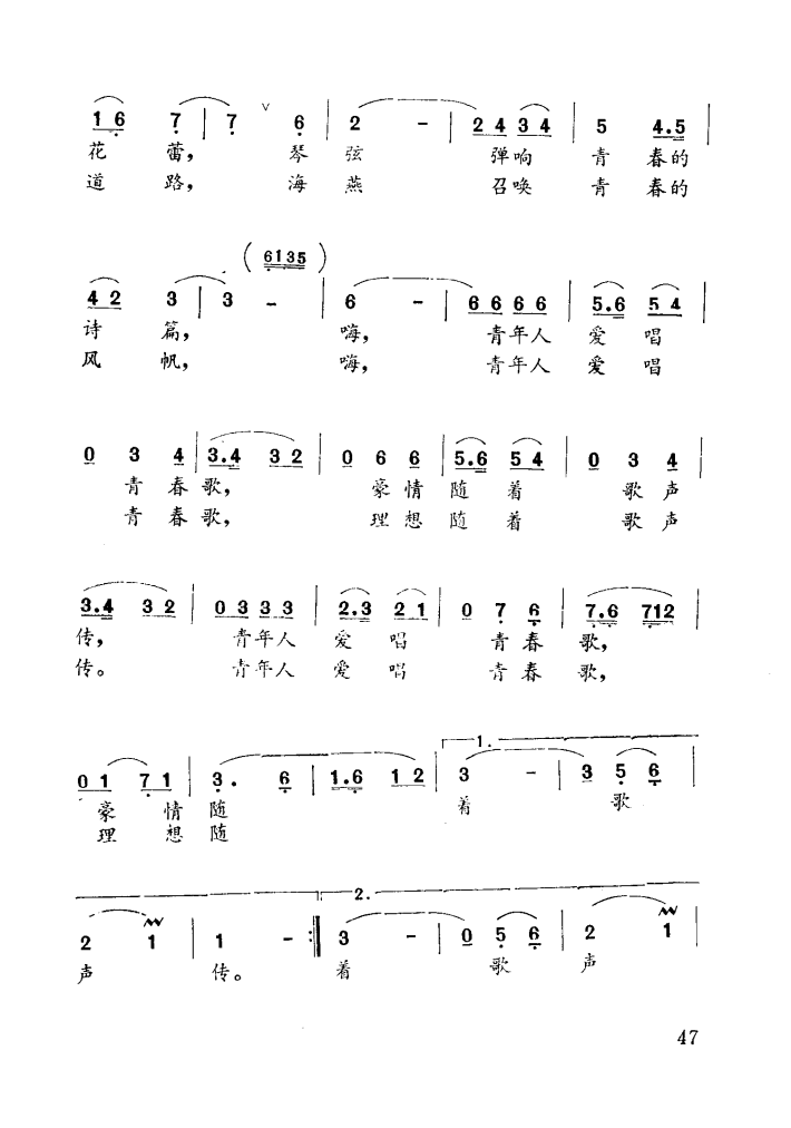 > 青年人爱唱青春歌