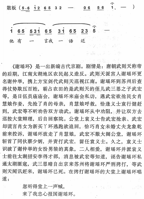 - [京剧谱] 忽听得堂上一声喊 谢瑶环 选段 琴谱 京剧戏谱