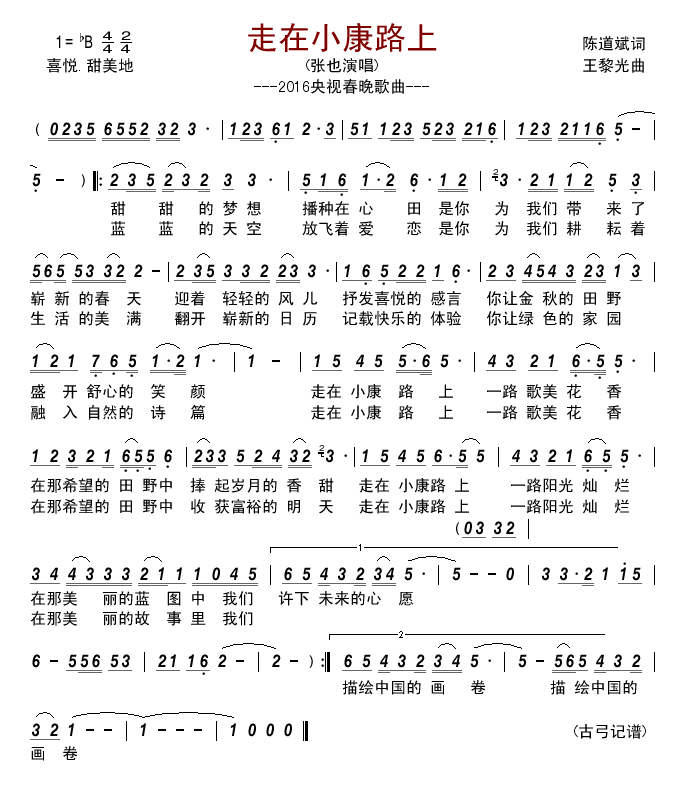 走在小康路上 2016央视春晚歌曲