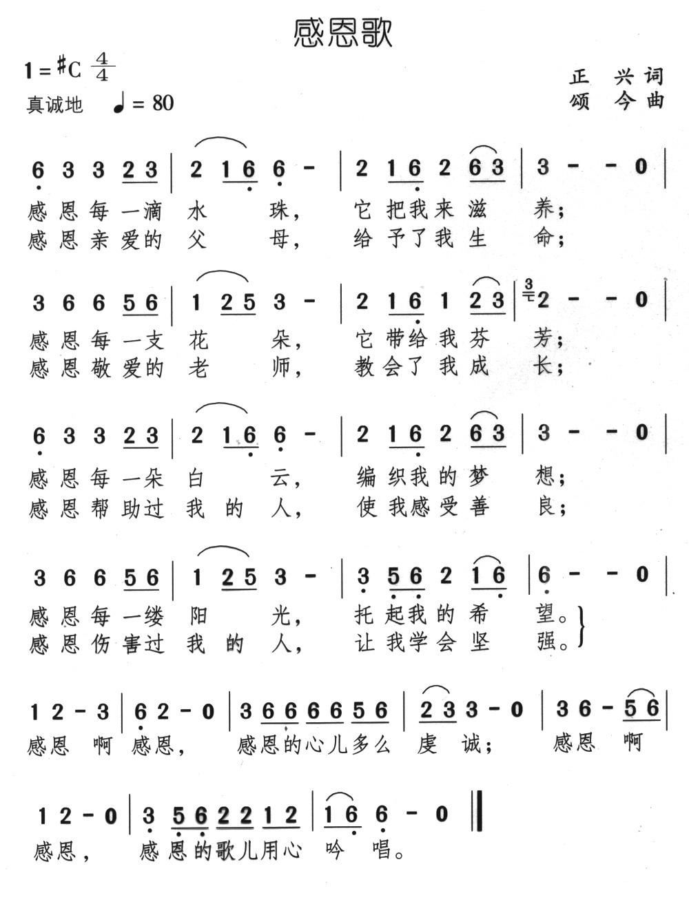 - [歌谱] 感恩歌