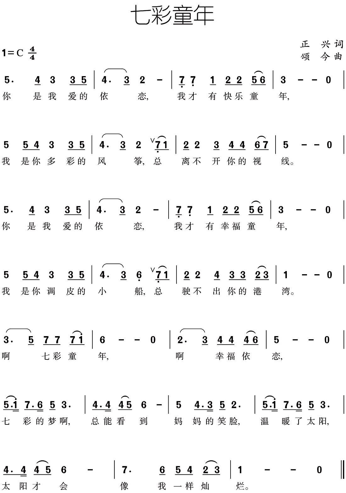 - [歌谱] 七彩童年歌