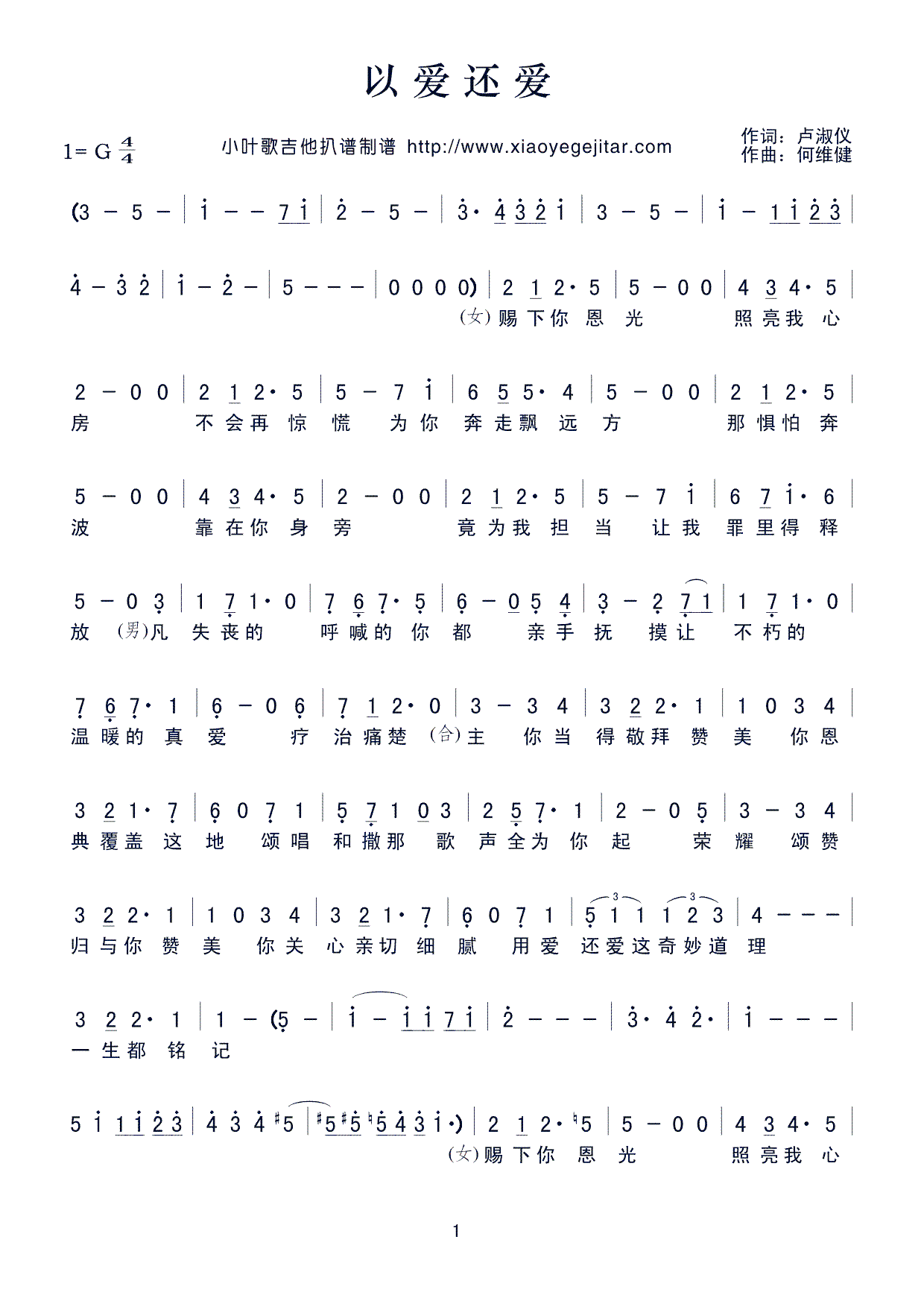 - [歌谱] 生死婚姻结成对