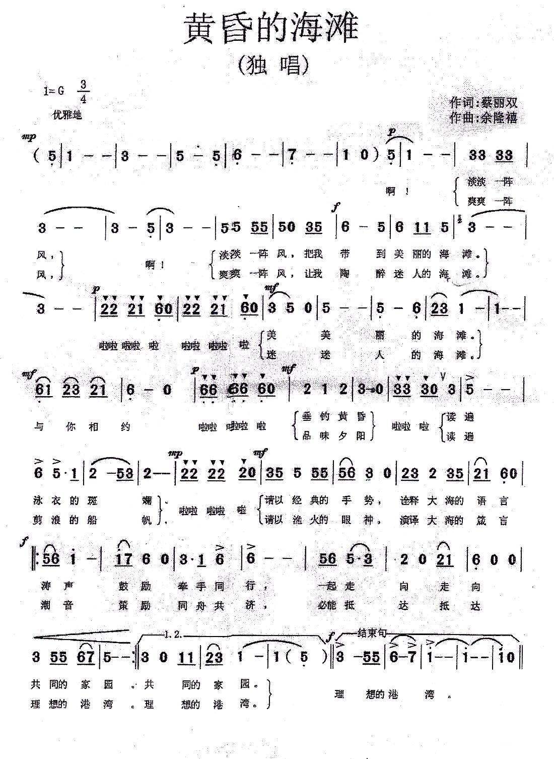 - [笛子谱,歌谱,吉他谱] 黄昏