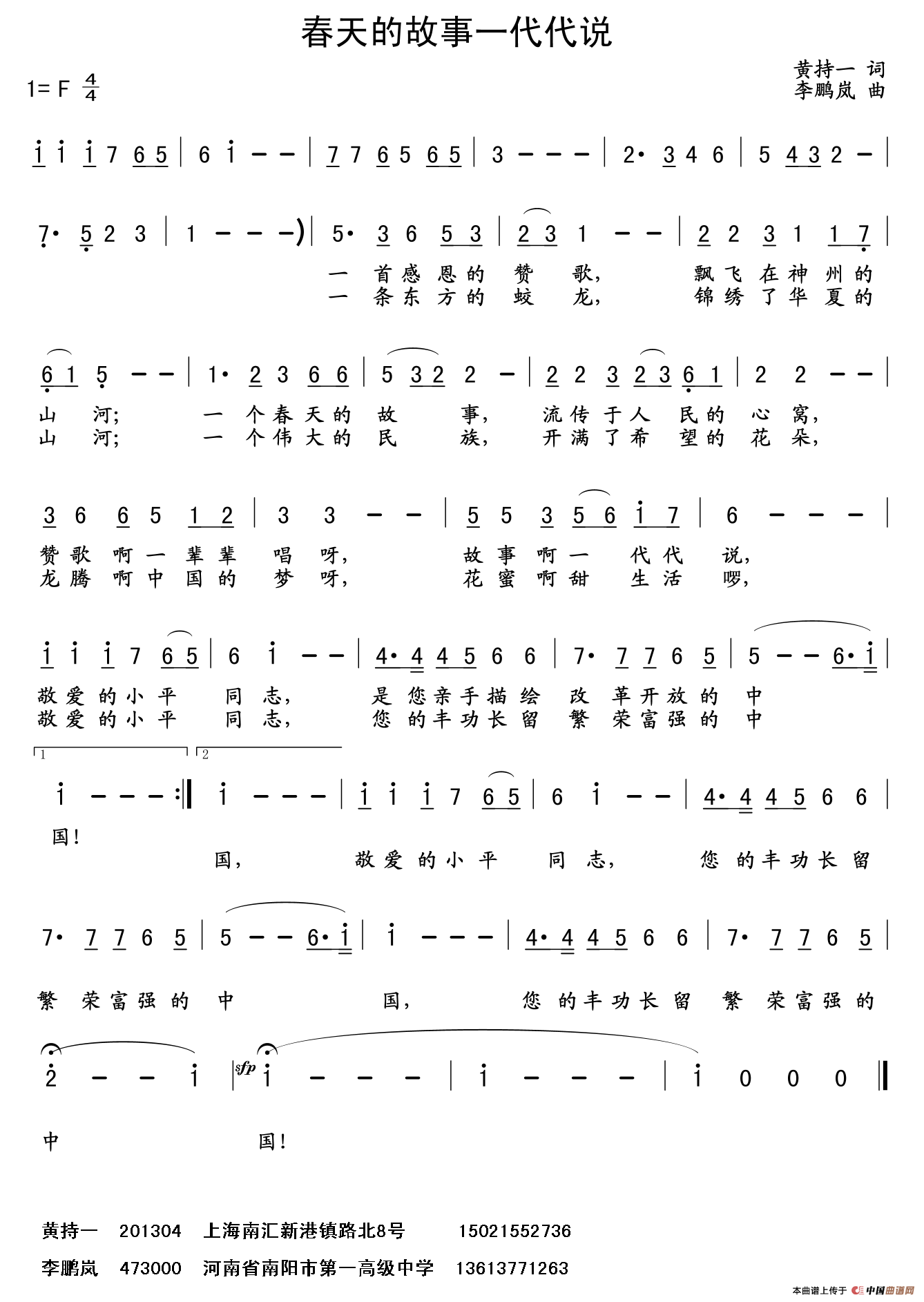 - [歌谱] 春天的故事一代代说