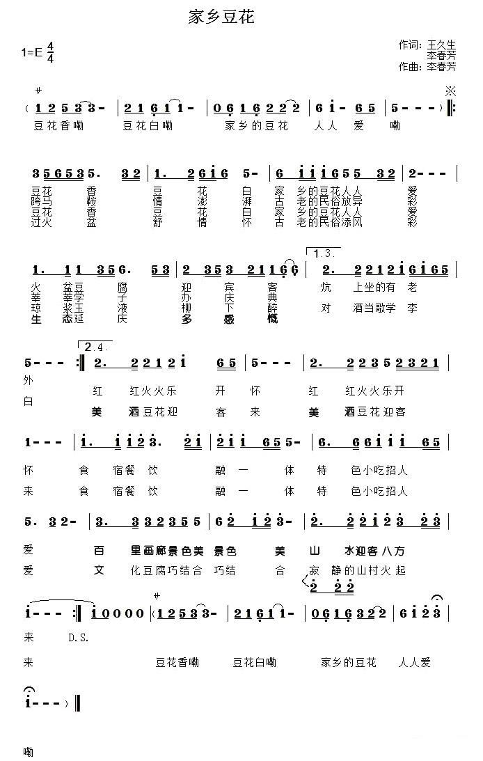 - [钢琴谱] 豆花的歌 钢琴伴奏谱