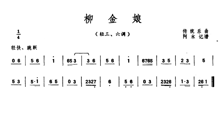 > 柳金娘 潮州音乐主旋律谱