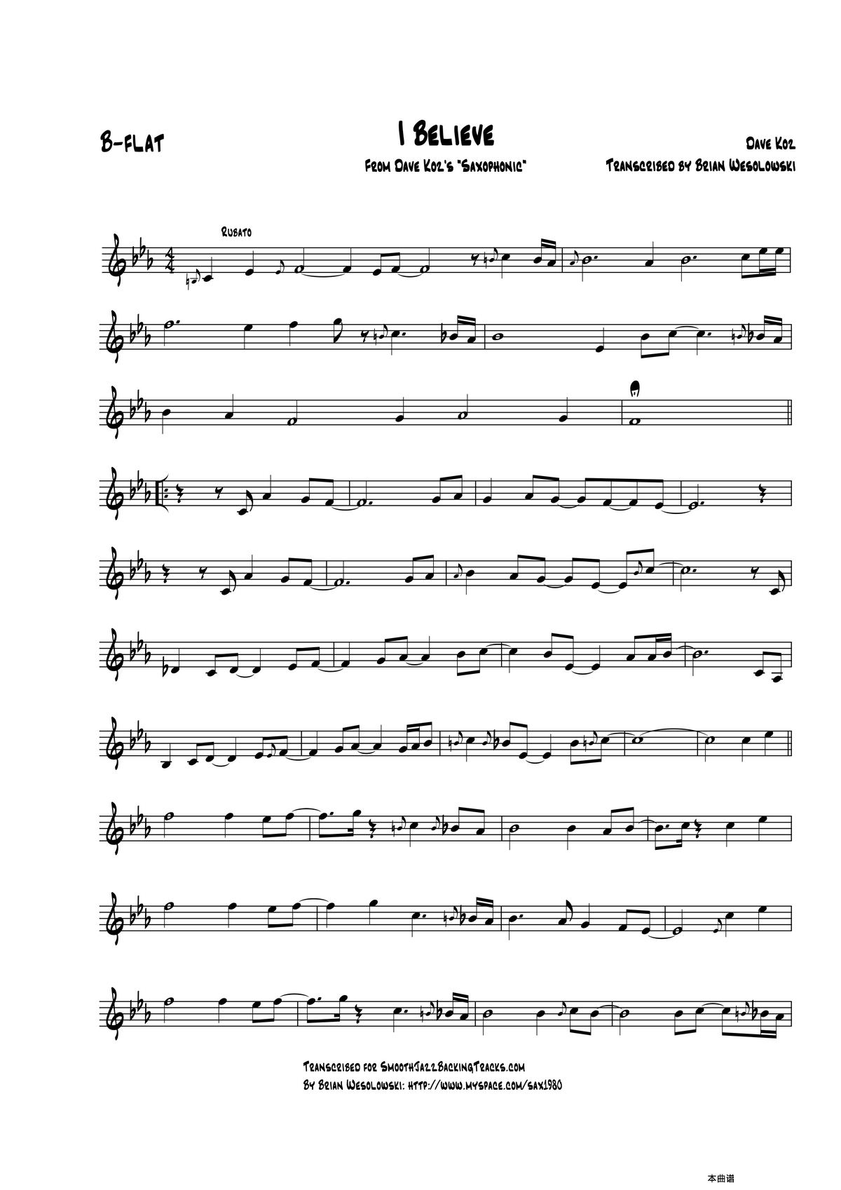 I Believe 次中音萨克斯