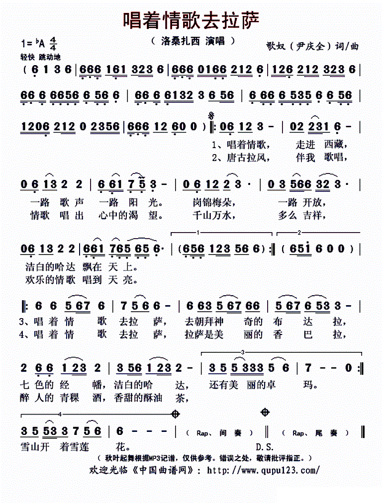 - [歌谱] 去拉萨的路有多远 阿斯根